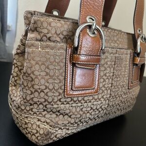 Coach Soho Handbag Small Shoulder Tote Bag Signature C Canvas Logo Brown Tan
