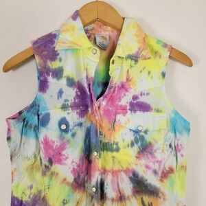 Carhartt Sleeveless Tye Dye Top Cotton Snap Front Western 2009 Fitted Structure