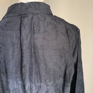 CP Shades Silk Navy Floral Damask Long Sleeve Collared Blouse Top Medium