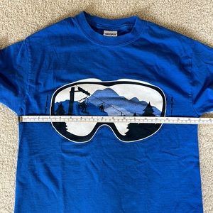 Googles with mountain and ski lift graphic on front