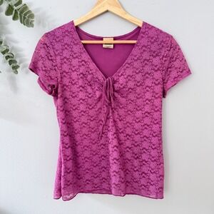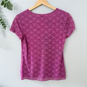 Faded Glory Top Babydoll Coquette Y2K Fuschia Floral Lace Short Sleeve Women's S