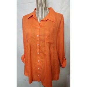 Style & Co Women's Pleated Roll Tab Sleeve Button Down Shirt Orange Size M NWOT. Shipped with USPS Ground Advantage.