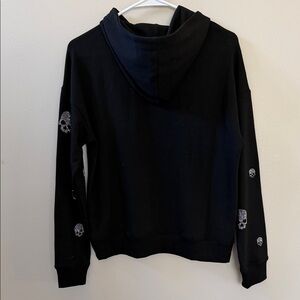 NWT, Marled, Black Hoodie Long Sleeve Sweatshirt with Rhinestone Skull Pattern Lightweight Hooded Sweatshirt, Sweater, Size Small