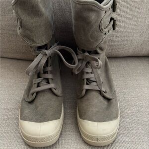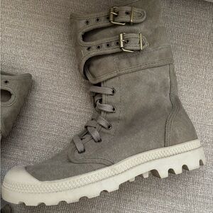 Palladium Pampa Pelaton Combat Boots Size 9 Women’s Beige Khaki Calf Buckles