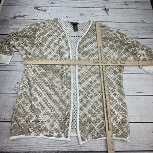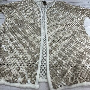 Multiples Womens Open Front Mesh Kimono Cardigan Beige White Pattern Size XL