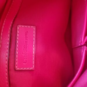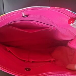 polyester trimmed in pink faux leather