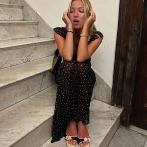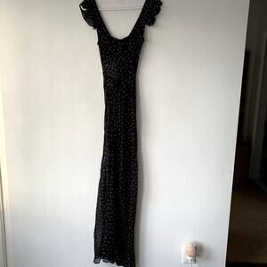 NWT Realisation Lila Silk Polka Dot Short Sleeve Bias Slip Maxi Dress Celestial