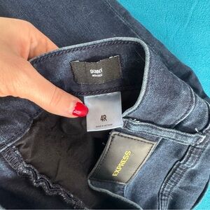 Keywords: Express jeans, dark wash jeans, skinny jeans, high rise denim, distressed jeans, women jeans, stretch denim, casual jeans, everyday denim, trendy jeans