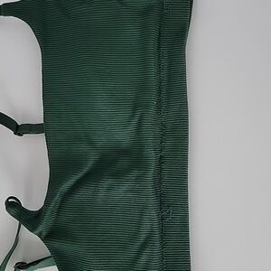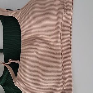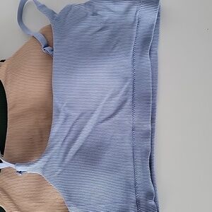 Small snag on beige fabric and pull on green thread, but not noticeable when wearing. All size medium and pads included