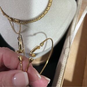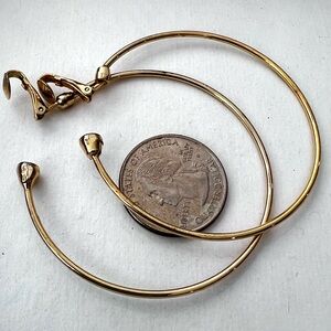 These elegant gold earrings feature a delicate large hoop design, perfect for adding a touch of sophistication to any outfit. The flip back closure ensures a secure fit.