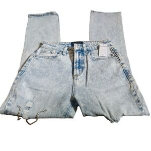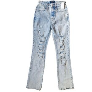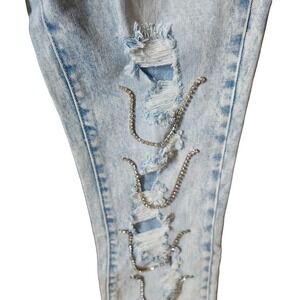 Juicy Couture Women's Light Wash Destroyed Straight Leg Chain Detail Jeans sz 24