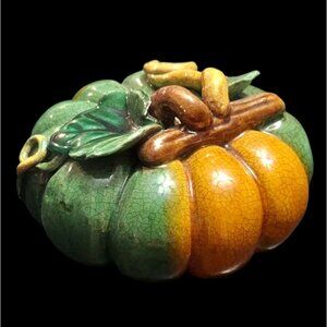 Bring charm to your autumn decor with this exquisite ceramic pumpkin. Its crackled glaze and vibrant hues create a warm, rustic seasonal accent for your space.