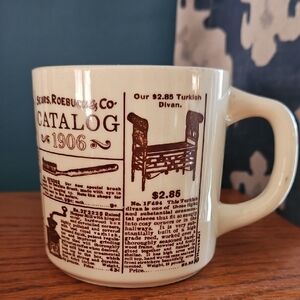 Enjoy your favorite beverage in this vintage style cream mug. Featuring a unique catalog design, it's perfect for adding a touch of nostalgia to your home dining collection. See each photo above for they are part of my description. Minor signs of wear on rim, botton and the handle. Price reflects. Mid century, diner style, retro, 1906 advertising mug.