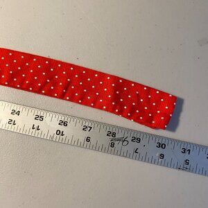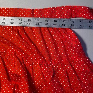Vintage Handmade 1950s Polka Dot Half Apron with gathering at the waist, and ruffles at the bottom in a red, slightly ribbed/striped opaque fabric with white polka dots lace trim. There is also a round pocket on front also trimmed in white lace. The opaqueness and movement make this a rather sexy apron! Very mid-century, retro. Perfect for Valentine's Day!