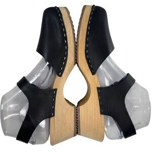 Lottas Stockholm Wood Clog Size 39 / 9 Sandals Buckle Ankle Strap Black Leather in Very Good pre-owned condition. Light wear on the upper and sole. Clean inside. There are minor marks, scratches, scuffs and creases from use.