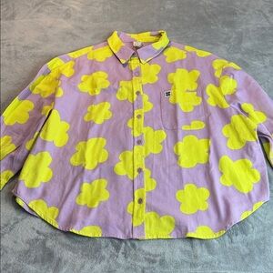 NWT Lucy & Yak Lenny Shirt Organic Twill Purple Yellow Size XL