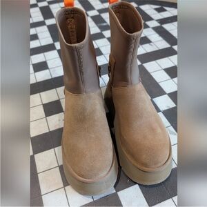 Stylish brown platform boots by UGG. Ideal for winter wear. Comfortable and trendy design.
