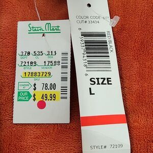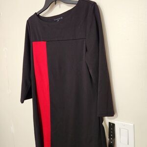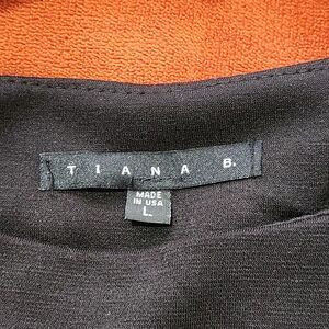 The Tiana B dress is a size large women's dress in a bold black and dark line red color combination.