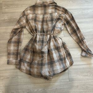 Never worn!! Stylish plaid romper with long sleeves and a tie waist. Perfect for casual outings.