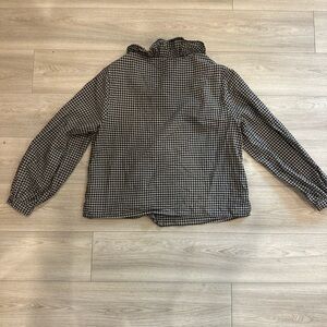 Worn once! Great condition! Stylish women's jacket featuring a classic black and white gingham pattern. Perfect for adding a touch of elegance to any outfit.