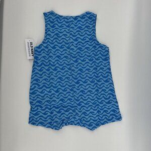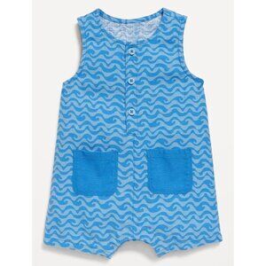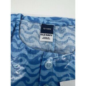 OLD NAVY Baby Romper Blue Wave Linen Blend Henley One Piece 12-18 months