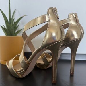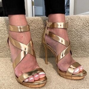 BCBG gold leather strappy heel sandals - size 7