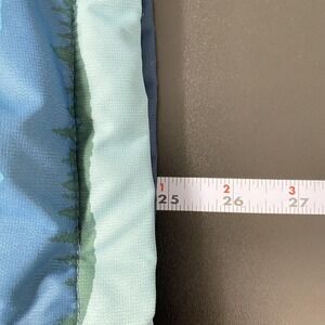 Color: Shades of blue with striped mountain landscape print and reflective details