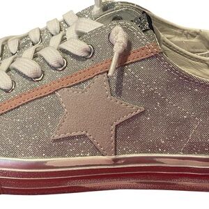 Vintage Havana Alive 19 silver checkered glitter no tie slip on sneakers with pink & white accents
