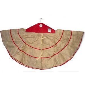 Kirklands Home for the Jolly Days Burlap Christmas Tree Skirt Red Trim