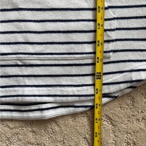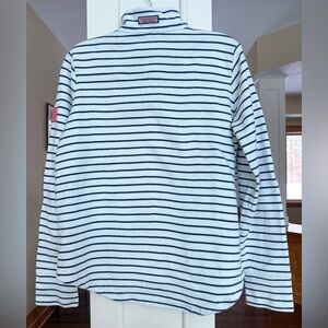 Classic Americana Regatta navy and white striped pullover. Features a quarter-zip design. Perfect for celebrating the upcoming Olympics. Please see last 3 pictures for some very light spots.