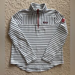 Vineyard Vines Dreamcloth Women’s Striped Quarter-Zip Pullover with Flag Patch.