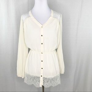 Charming Charlie cream tunic top lace details