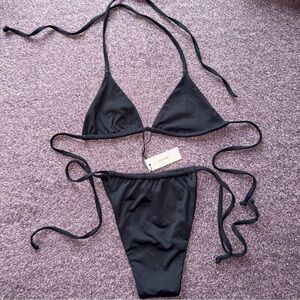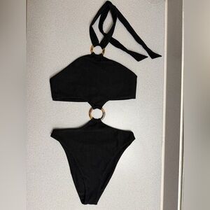 •Navy blue, Adjustable straps, Bow ties around waist, Henley button down neckline