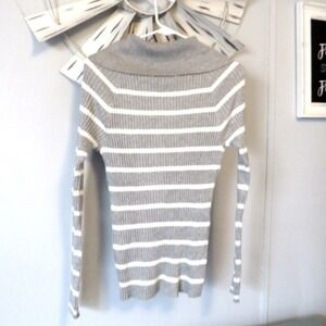 NWT Hooked Up by I.O.T Striped Gray & White Ribbed Sweater Size Large