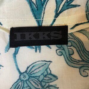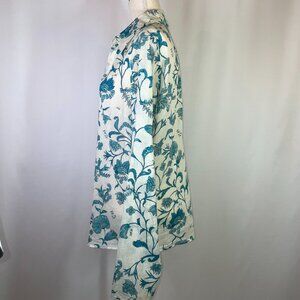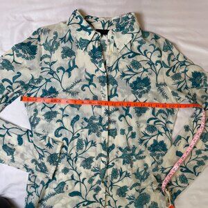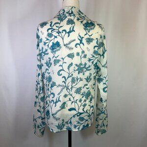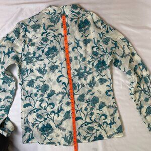IKKS French Floral Linen Blouse Long Sleeves Gauzy Collared Button Down Size L