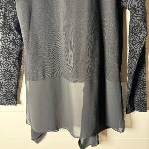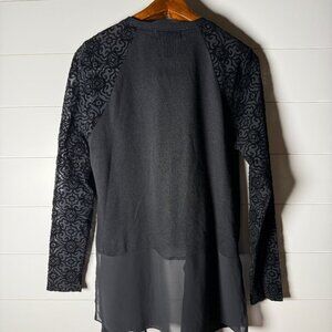 August Silk Lace Sheer Sweater Open Black Cardigan Sz Large
