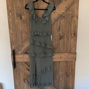 NWT Show Me Your MuMu Olive Ruffle Midi Dress Size S