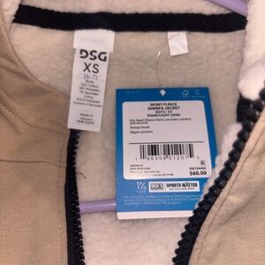 New with tags DSG Sport Fleece Sherpa-Lined Zip Hoodie Jacket in a neutral khaki/light sand colorway.