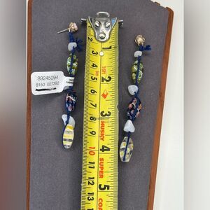 Features: Dangle design, post-back closure, thread detailing, glass beads