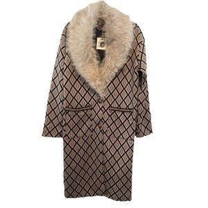New Nekane NKN Abrigo Jacquard Coat Removable Faux Fur Collar Size S Retail $225