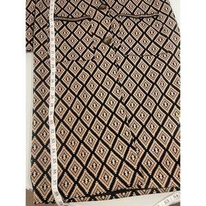 The New Nekane NKN Abrigo Jacquard Coat is a stylish and versatile outerwear piece perfect for any occasion. Made from a viscose, polyester and elastane blend with a polyester lining, this mid-length coat features a removable faux fur collar, adding a touch of luxury to its design. The argyle/diamond pattern in black, tan and rust is complemented by metallic trim and studs on the pockets for a trendy look. Ideal for the fall, winter, and spring seasons, this coat from the brand Nekane NKN is a must-have for any fashion-forward woman.