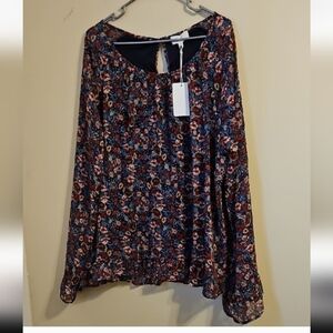 Gilli Floral Shear Sleeve Keyhole Back Tunic Blouse. NWT