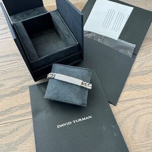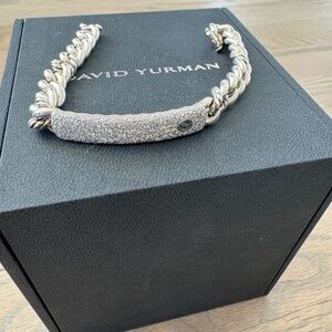 David Yurman Belmont Curb Link ID bracelet in sterling silver with pavé diamonds- AUTHENTIC. Like New Condition - worn only once. Hard to find. Comes with authentication card, cleaning cloth and box.