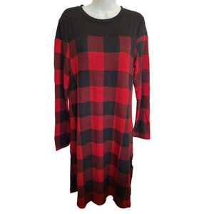 Long Sleeve Dress L Red Black Plaid cabincore dark academia super soft