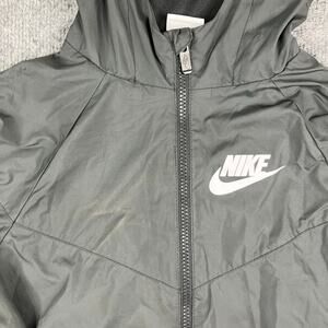 Nike Windbreaker Jacket Boys Size M Black Full Zip Hooded Lightweight Logo
