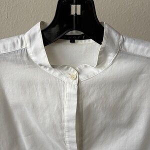 Beautiful Theory sheet top. Light weight with mandarin collar and button detail. Sleeves can be rolled up (buttons on side).