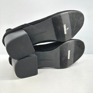 Scalloped faux suede ankle boots 7W black stacked heel round toe side insets