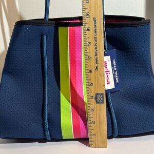 Taylor Gray Melissa Perforated Navy w/Pink Lime Green Stripe Neoprene Tote NEW
