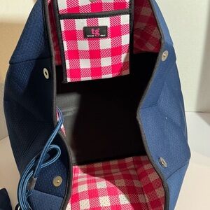 Perforated Navy with Pink and Lime Green Stripes. Great for travel, beach, pool or sports! Perfect mom bag. New with tags!