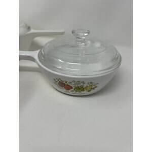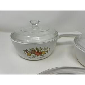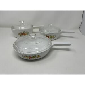 Add a touch of vintage charm to your kitchen with this delightful 6-piece Corning Ware Spice of Life saucepan set! This set includes three saucepans with their respective lids, all in good pre-owned condition. Please refer to the photos for a detailed look at any minor imperfections.